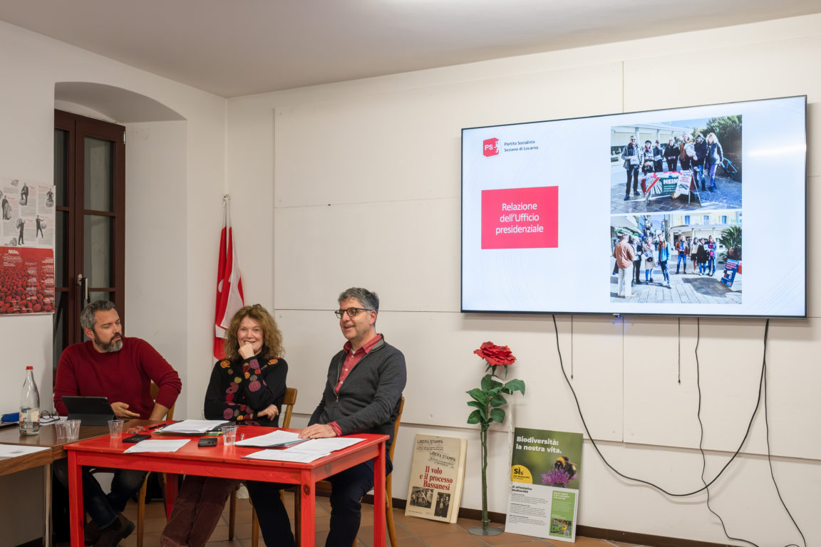 Il Partito Socialista di Locarno si è riunito in assemblea ordinaria alla presenza della Municipale Nancy Lunghi, del Co-Presidente cantonale Fabrizio Sirica, del Co-Presidente regionale Luca Pizzetti e dei consiglieri comunali della sezione. I lavori sono stati aperti dal presidente Augusto Canonica, che ha ricordato con commozione la scomparsa dei compagni Franco e Silvo Dalessi.