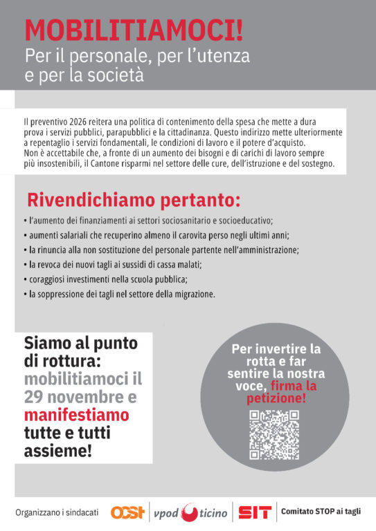 • GRANDE MANIFESTAZIONE contro ai tagli